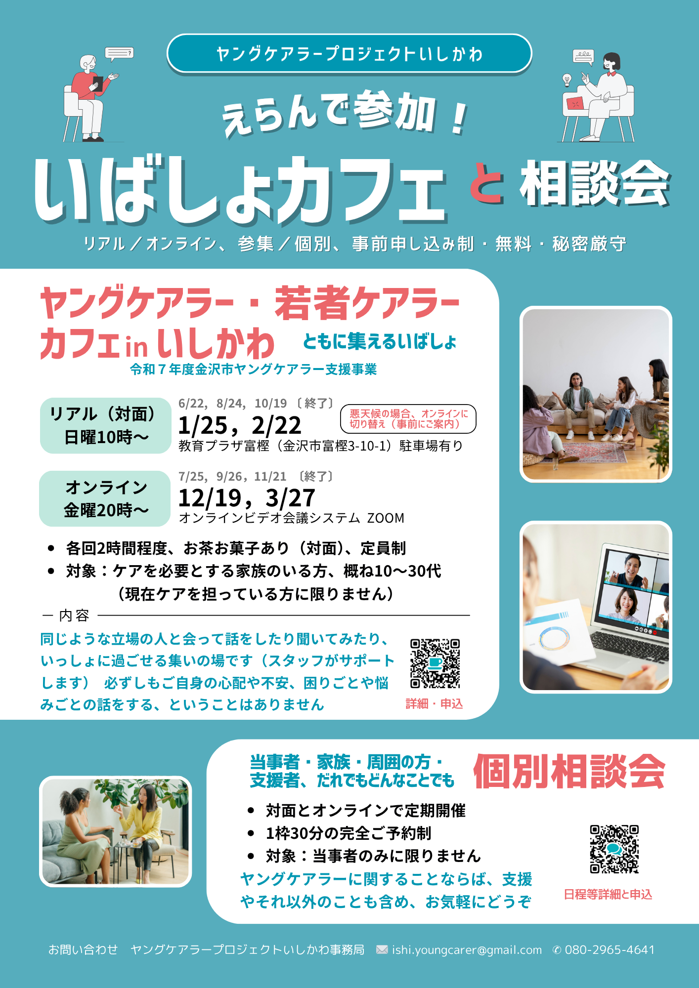 ヤングケアラー&若者ケアラーカフェinいしかわ~当事者の居場所~ 令和7年度金沢市ヤングケアラー支援事業を受託 |